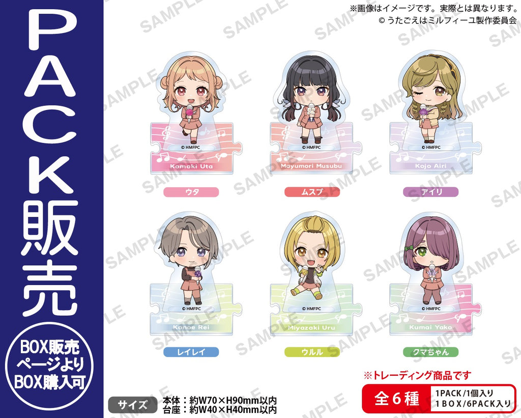 TVアニメ「うたごえはミルフィーユ」より、トレーディングつながるプチアクリルスタンドが新登場!描き下ろしミニキャラを使用したデザインです!