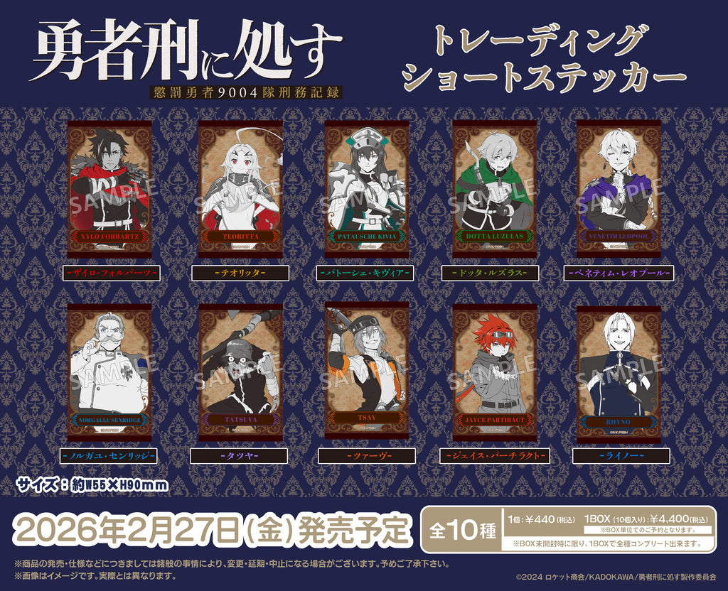 TVアニメ『勇者刑に処す 懲罰勇者9004隊刑務記録』より、モノトーンカラーのおしゃれなトレーディングショートステッカーが登場!