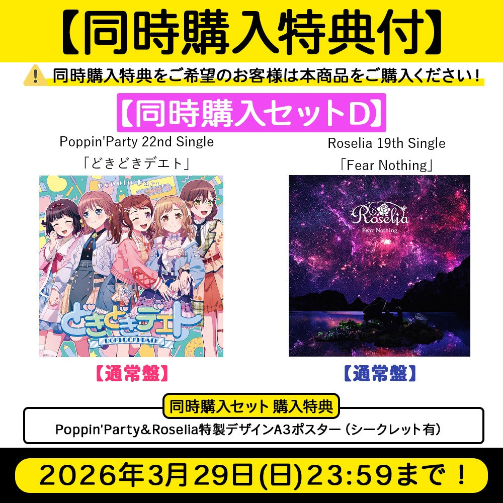【同時購入セットD】Poppin'Party 22nd Single「どきどきデエト」【通常盤】/Roselia 19th Single「Fear Nothing」【通常盤】
